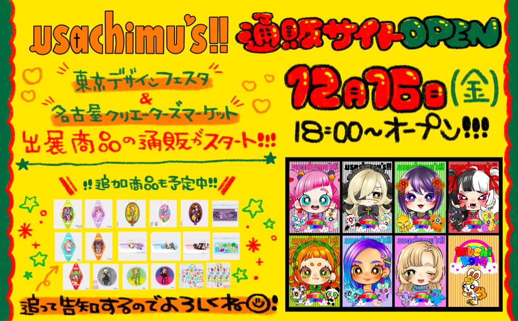 12/16(金)18:00〜 usachimus通販サイトがオープンしました‼︎